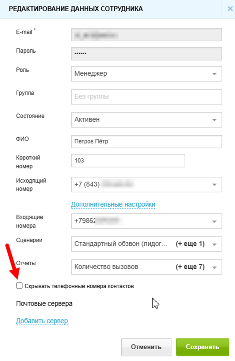 Как скрыть номер сотруднику