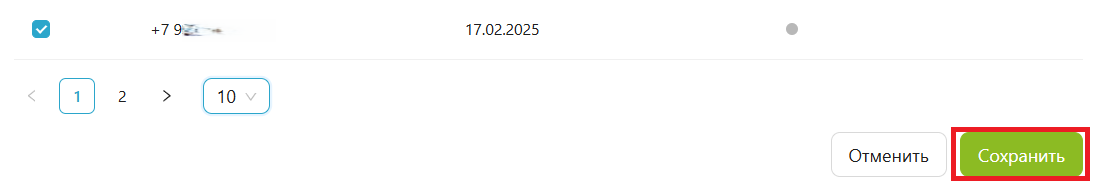 - Массовый выбор — активируйте общий чекбокс номеров, чтобы выбрать все номера на странице.