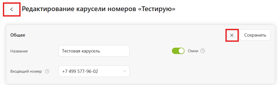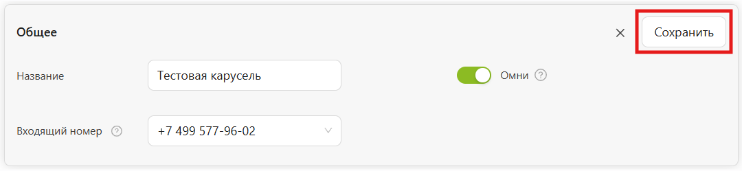 Чтобы отредактировать информацию в блоке «Общее», измените название, входящий номер или включите/выключите функцию «Омни». После внесения изменений нажмите кнопку «Сохранить».