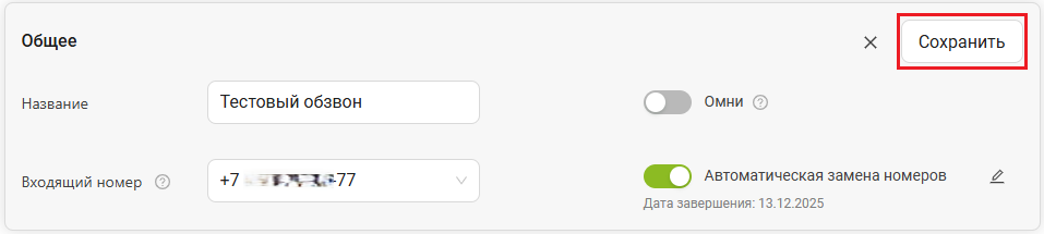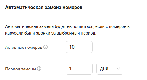 Важно! Автоматическая смена номеров произойдет только в случае, если в течение выбранного периода в карусели был совершен хотя бы один звонок. Если звонков не было — замена откладывается до следующего события обзвона.