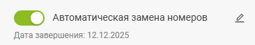 В настройках автозамены при редактировании карусели отображается примерная дата завершения — это момент, когда каждый номер из резерва хотя бы один раз побывает в активном пуле с учётом заданного периода замены.