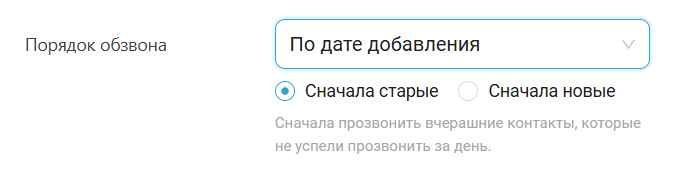 Например, вы отправляете контакты для обработки из CRM в Скорозвоне. Важно в первую очередь обрабатывать «теплые» лиды, которые совсем недавно оставили заявку и попали в проект. Установите порядок обработки «По дате добавления/Сначала новые». В первую очередь будут обработаны новые контакты, которые только попали в проект.